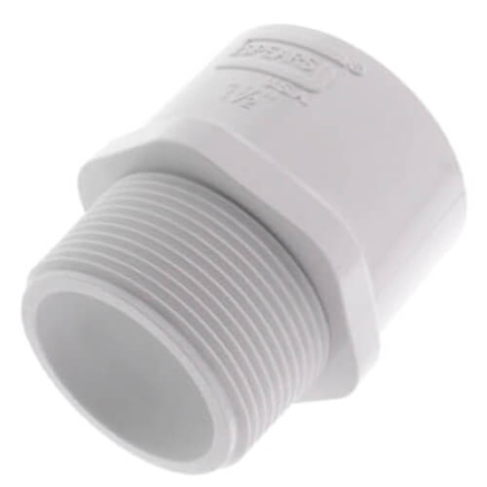 Spears® Pipe Adapter, Standard, Fitting/Connector Type: Adapter, 1-1/2 in Nominal Size, MNPT x Socket, 2-17/32 in Length, SCH 40/STD, Molded, PVC, White, 140 deg F, 2-1/4 in W, Domestic