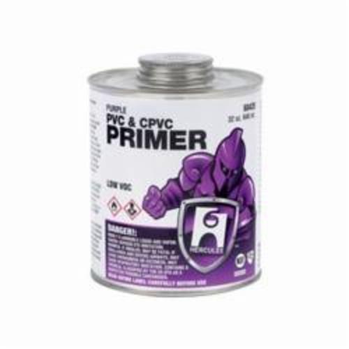 Hercules® Primer, Professional, 32 oz, Can, 2.05 lb Net Weight, For Use With: All Schedules and Classes of CPVC and PVC Pipe and Fittings, Liquid, Purple, Solvent, 505 g/L VOC, 14 to 23 deg F Flash, Composition: Acetone, Cyclohexanone, Furan, Tetrahydro, Methyl Ethyl Ketone, 0.82 to 0.86 Specific Gravity