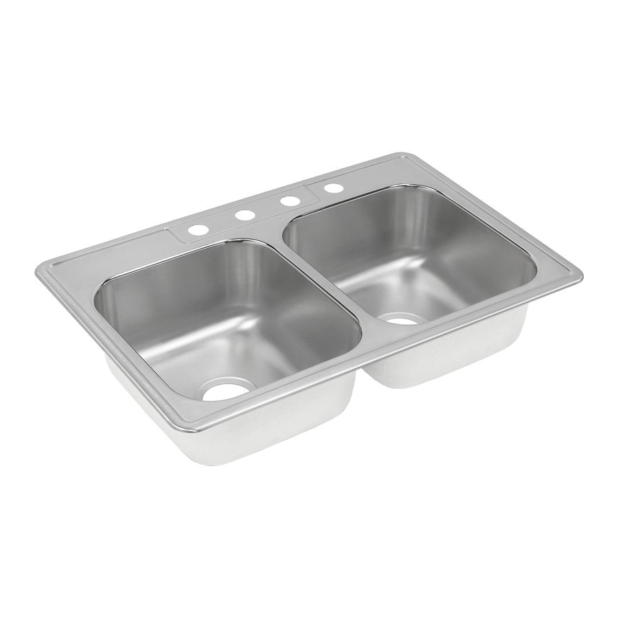 Elkay® Kitchen Sink, Collection: Dayton®, Rectangle, 14 in L x 15-3/4 in W x 8 in H Bowl, 3-1/2 in Drain Opening, 4 Faucet Holes, 2 Basin, 33 in Overall Width, 22 in Overall Depth, 8-3/16 in Overall Height, Top Mount, Stainless Steel, Satin, Domestic