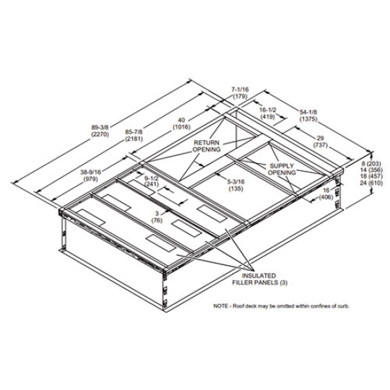 Allied Commercial™ Downflow Hybrid Roof Curb, For Use With: Z-Series™ Model 092, 102, 120, 150 Rooftop Packaged Gas Heat Units, 14 in