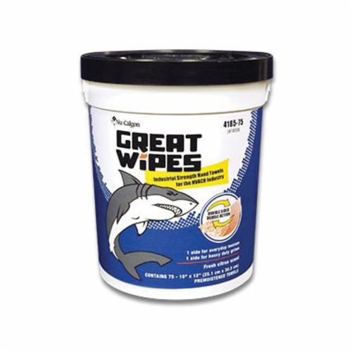 Great Wipes Industrial Strength Hand Towels are waterless wipes made specifically for the air conditioning, refrigeration, and plumbing service technician. Each premoistened, heavy duty towel has strong pumice scrubbing power that conveniently cleans anywhere and anytime. The powerful, yet safe, cleaning agents in Great Wipes work together with an absorbent, non-scratching abrasive hand towel. The result is hands that are clean and left residue-free with a pleasant orange fragrance. These shop size durable towels quickly absorb to remove substances, such as lubricant, grime, ink, tar, caulk, sealant paint, epoxy, adhesive, grease, urethane, and much more. Great Wipes can also be used to degrease tools, tool boxes, equipment, work surfaces, metal, vinyl, painted surfaces, compressor parts, components, and more.