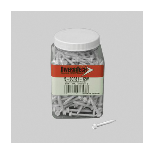 Sheet Metal Screw With White Head, # 8, 1-1/2", Hex Drive, Diversitech 5-SCR81-12W