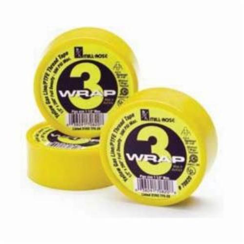 Mill-Rose 3-Wrap Yellow Gas Seal Tape is a PTFE thread sealing tape designed specifically for gas lines. This is a full or maximum-density thread sealing tape. Mill-Rose 3-wrap yellow gas seal tape is approved by relevant authorities and used by the gas industry world-wide. It's color-coded yellow so fitters and inspectors can easily recognize it as an approved tape.