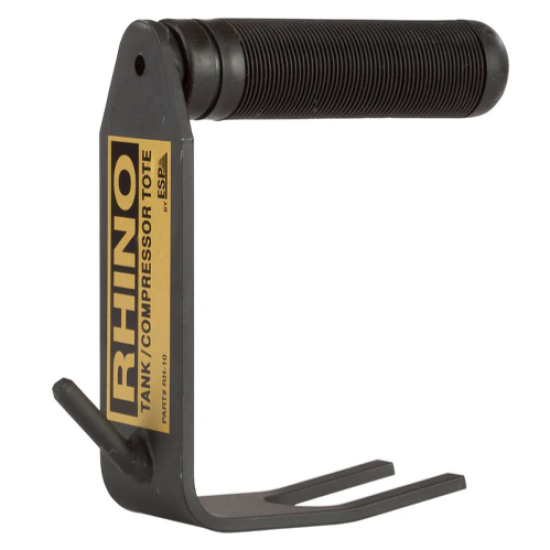 The Rhino Tank and Compressor Tote allows the user to easily pick up nitrogen, CO2, and oxygen 20 and 40 lb cylinders, along with all hermetic compressors with lift tabs