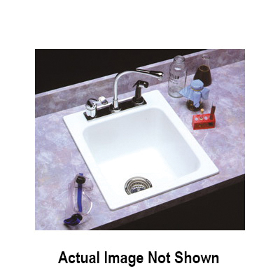 ELM® Utility Sink, Self Rimming, 15 in L x 14 in W x 9-1/2 in D Bowl, 3-1/2 in Drain Opening, 4 or 8 in Faucet Hole Spacing, 1 Basin, 17 in Overall Width, 10 in Overall Depth, 20 in Overall Height, Fiberglass, White