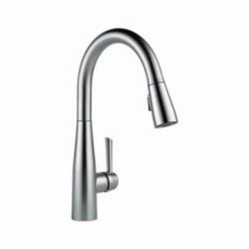 DELTA® Kitchen Faucet, Collection: Essa™, 1.8 gpm, 8 in Center Distance, Pull-Down Spout, 9-3/8 in Spout Reach, 15-3/4 in Spout Height, Lever Handle, 1 Handles, 1 Faucet Holes, 1-1/4 in Faucet Hole, 3/8 in Connection, Compression Connection, Spray Pattern: Aerated Stream/Full Body, 2 Spray Functions, 3 in Maximum Deck Thickness, Deck Mount, Euromotion DIAMOND™ Valve/Cartridge, 15-3/4 in H x 4-1/4 in W x 9-3/8 in D, Metal, Arctic Stainless, Domestic, Commercial