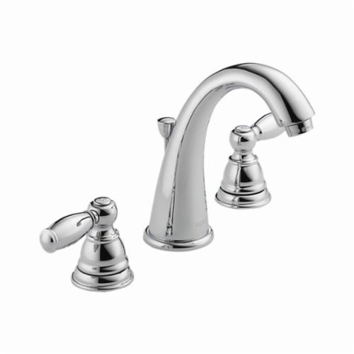 Peerless® by DELTA® Widespread Lavatory Faucet, 1.5 gpm, 6 to 16 in Center Distance, High Arc Spout, 4-21/32 in Spout Reach, 6-3/16 in Spout Height, Lever Handle, 2 Handles, 3 Faucet Holes, 1/2 in Connection, IPS Connection, 1-1/8 in Maximum Deck Thickness, Deck Mount, Washerless Stem Valve/Cartridge, 6-3/16 in H x 9-19/32 in W x 6-11/32 in D, Brass, Chrome Plated