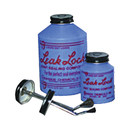 Leak Lock joint sealer is a soft setting pipe joint compound for sealing threaded joints, flanged joints, gasket surfaces and mating surfaces. This resin based brushable paste remains permanently flexible, adheres to internal surfaces and fills voids. It is ideal for use on metal and plastic materials subject to extreme vibrations, temperatures from -100 degF (-73 degC) to 400 degF (204 degC) full vacuums to 10,000 PSI. Leak Lock seals all refrigerants (R12, R22, R502, R134A, etc.) petroleum products, natural and manufactured gases, steam, water, air, etc. Available in 11/3 oz. plastic tube and 4 oz. and 1 pint brushtop plastic jars.