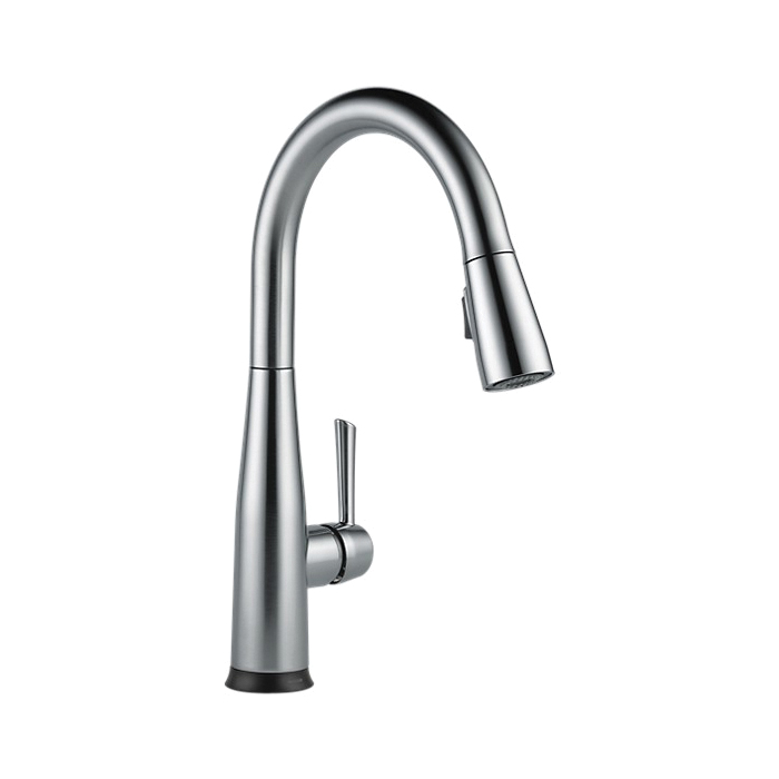 DELTA® Kitchen Faucet, Collection: Essa™, 1.8 gpm, 8 in Center Distance, Pull-Down Diverter Spout, 9-3/8 in Spout Reach, 16 in Spout Height, (6) AA Battery, 3/8 in Connection, Compression Connection, Lever Handle, 1 Handles, 1 or 3 Faucet Holes, Spray Pattern: Aerator Stream/Full Body, 2 Spray Functions, 3 in Maximum Deck Thickness, Deck Mount, Electronic Valve/Cartridge, 4-21/64 in W x 9-3/8 in D x 16 in H, Metal, Arctic Stainless, Domestic, Commercial