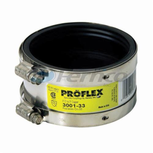 Fernco® PROFLEX® Pipe Coupling, Shielded, Series: 3001, Fitting/Connector Type: Coupling, 3 x 2 in Nominal, Cast Iron x C, 2.13 in Length, -30 to 180 deg F, 2.08 x 3.32 in, Domestic/Import: Domestic
