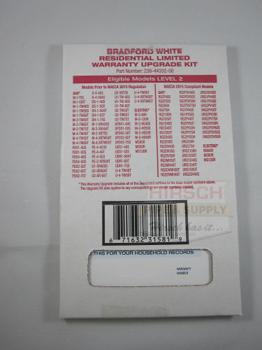 Bradford White 238-44332-00 Kit-Warranty Upgrade Level 2