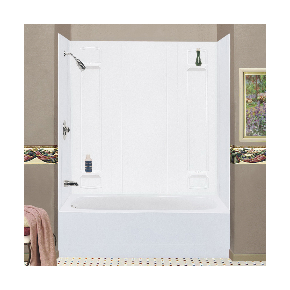 ELM® Bathtub Wall, Series: 557, Collection: DURAWALL®, 57 in Height, 5 Wall Panels, 4 Built-In Shelves, Overlapping Edge, Fiberglass, White