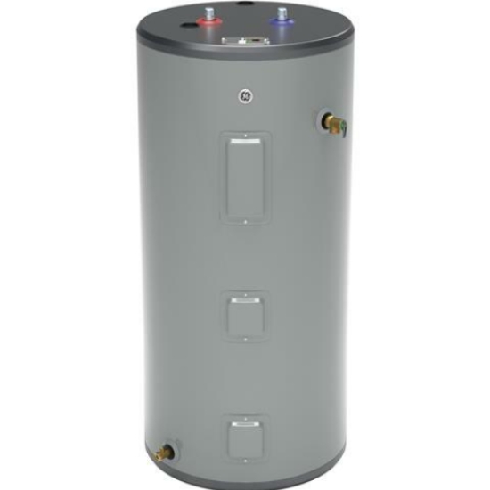 The GE40S08BAM is a 40 gallon, 5500 Watt electric water heater that uses 240 Volt electricity. It has 2.75" insulation to help reduce heat loss, resulting in less energy consumption, improved operation efficiencies. It is 22" in diameter and is 51-3/8" high (53" to top of water inlet/outlet connections). Plus you will still get the power you need to heat with electricity. The unit ships with a 120°F factory default temperature setting, it is adjustable from 90° - 150°.