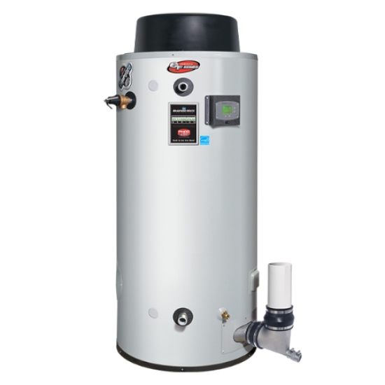 Bradford White® Gas Water Heater, Ultra High Efficiency, Series: eF Series®, 399999 Btu/hr Heating, Natural Gas, 1 in Gas Connection, 119 gal Tank, Direct Spark Ignition, Direct/Power Vent, 4 in Vent Size, 456 gph at 100 deg F Rise Recovery, 1-1/2 in NPT Water Connection, 150 psi, 180 deg F, Ultra Low NOx: No, ASME Yes/No: No, Steel, Vitraglas®, 33 in Dia x 35 in D x 77-1/8 in H, Domestic