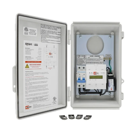 - RSH-50 Surge Protector, Voltage Range Monitor, and 60A Disconnect Breaker inside a NEMA 3R/IP66 enclosure