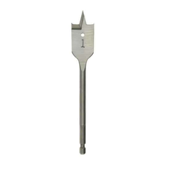 For fast, small hole drilling in wood, count on Milwaukee's Premium quality 13/16 in. Flat Boring Bit. Made of heat treated High Carbon steel, the Flat Boring Bit bores clean holes at any angle in wood, plastic, plywood and Formica. The drill point and cutting edges can be re-sharpened often for economical hole drilling. Bit offers a 6 in. drilling depth but can be used with 12 in. extension, 48-28-3350, for extended deep hole drilling. 1 per package.