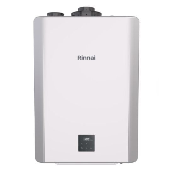 The SENSEI™ RXP199iN condensing tankless water heater from Rinnai is only the size of a small suitcase, uses either Natural Gas or Propane, and can be installed indoors or outdoors using the Versa-Vent™ accessory. Rinnai SENSEI RX Series tankless water heaters last up to twice as long as tanks and have twice the warranty length. Plus, they save energy by heating water only when it is needed.