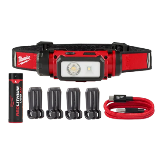 The MILWAUKEE® REDLTHIUM™ USB Hard Hat Headlamp powered by REDLITHIUM™ USB offers HIGH OUTPUT™ lighting that stays brighter for longer. This headlamp is 20% LIGHTER WEIGHT, BRIGHTER, and offers MORE RUNTIME. In a lightweight and compact design this headlamp delivers 600 lumens of TRUEVIEW™ HIGH-DEFINITION OUTPUT with hybrid, spot, and flood modes. The headlamp easily detaches from the bracket for easy charging and to help get light into those hard-to-reach places. You can now optimize the position of the light with 180 degrees of mobility and 5 different output modes. This headlamp is IP54 rated as weather and dust resistant and survives impacts from up to 2 meters to withstand harsh job site conditions. The REDLITHIUM™ USB Battery can be recharged in the flashlight via USB - C or swapped out with additional REDLITHIUM™ USB Batteries for virtually no downtime. The REDLITHIUM™ USB Hard Hat Headlamp is covered by a limited lifetime warranty.
