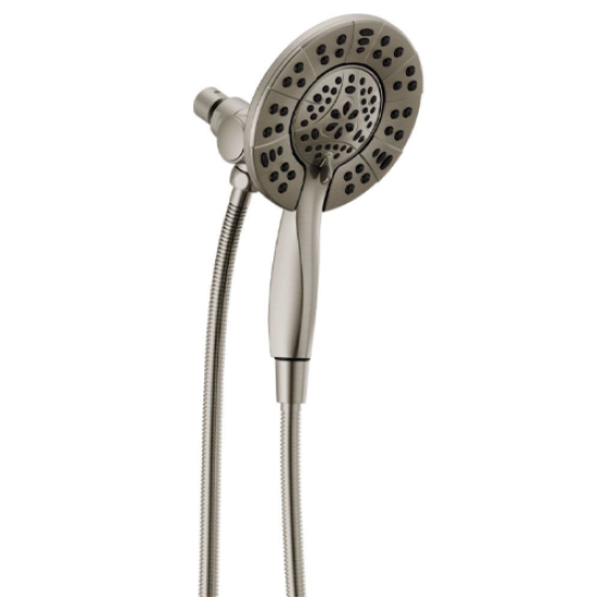 The Delta® In2ition® Two-in-One Shower features a detachable hand shower which can be used separately from or simultaneously with the shower head. This integrated dual-functionality gives you maximum flexibility without sacrificing warmth, as you can choose to have water streaming from the shower head only, the hand shower only or both the shower head and hand shower at once. While other products may gather unsightly mineral build-up over time, Delta soft rubber Touch-Clean® spray holes allow any mineral residue to simply be wiped away for an instantly refreshed look – with no need for soaking or the aid of chemical cleaners. The pause setting gives you ample space for shaving, lathering and other shower tasks, without worrying about overspray or water waste. This spray setting helps you conserve water, so you can worry less about depleting your supply of hot water - and you help the environment too. Delta WaterSense labeled faucets, showers and toilets use at least 20% less water than the industry standard—saving you money without compromising performance.