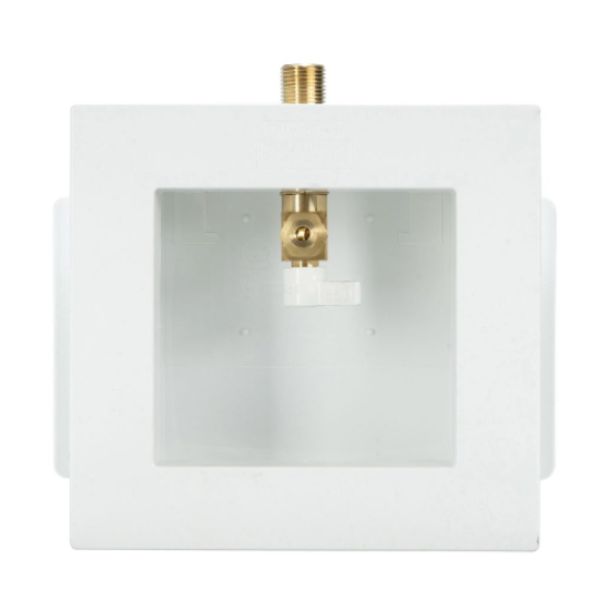 Ensure your icemaker is properly connected to a water supply with the Guy Gray White PVC Resin Fire-Rated Ice Maker Outlet Box. This recessed outlet box is designed to be installed in the stud bay, minimizing bulkiness and increasing living space. It features a snap-on frame and a forward-mounted valve that gives easy access for on/off operation. Made of high-temperature PVC resin, this fire-rated icemaker outlet box (with faceplate) measures 8-5/16 inches wide by 7-7/8 inches high and is available with a variety of different valve types. Established in 1958, Guy Gray is known throughout the plumbing industry as the creator of the original washing machine outlet box. Since its founding, Guy Gray has grown its product line from a handful of galvanized metal boxes to an extensive line of outlet boxes for a wide variety of applications.