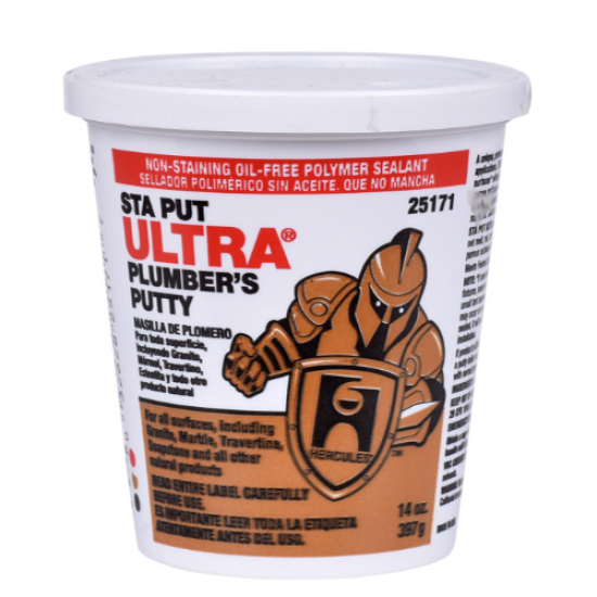 Hercules® Sta Put® Ultra Plumber’s Putty delivers superior staying power and a watertight seal for setting most types of plumbing fixtures and surfaces. Permanently soft, malleable and flexible, this non-staining polymer sealant is safe for use on most porous surfaces – no pre-treatment or cure time required. Sta Put Ultra is also odorless, non-toxic and clean to handle, simplifying application and cleanup. Behold the power of Hercules®, products built to last and trusted by plumbers to withstand even the toughest conditions.