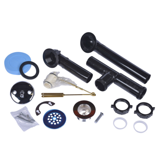 Dearborn® Plastic Tubular Trip-Lever Bath Waste Full Kit is manufactured of lack or white polypropylene and features a chrome-finish stopper.