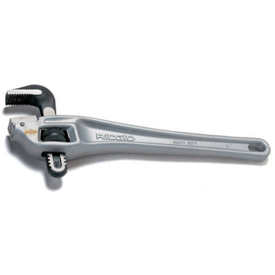 The RIDGID Aluminum Offset Pipe Wrench features a jaw opening parallel to the handle and a narrower hook jaw head to provide easy entry into tight spots. Ideal for overhead applications