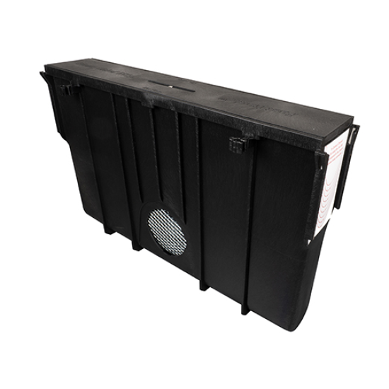 The new 865-FCB catch basin is made from the same rugged, impact-resistant, HDPE material as our FastTrack™ channels, and connects seamlessly to channels on one or both ends. Like the channels, the catch basin includes grate anchors and a durable construction cover. In addition, a removable, heavy-duty galvanized basket is available for keeping trash/debris out of the drain line.