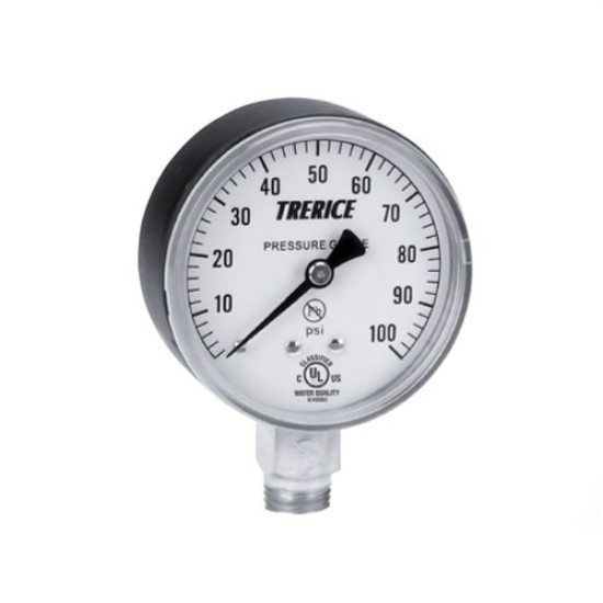Trerice 800B4002LA100 800B Dry Utility Pressure Gauge, 0 to 100 psi Pressure, 1/4 in MNPT Connection, 4 in Dia Dial, 1.6 % Accuracy