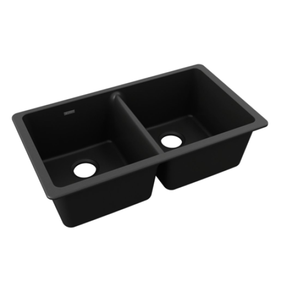 Elkay® Quartz Classic® 33" x 18-1/2" x 9-1/2" Equal Double Bowl Undermount Sink Black