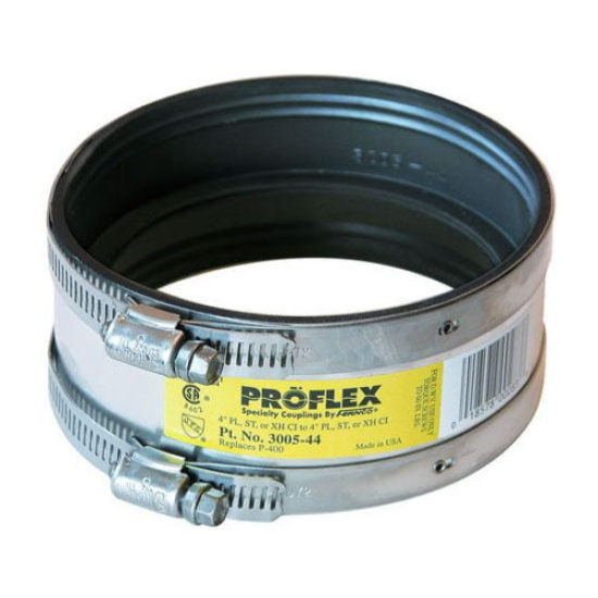 Proflex allows you to make transition pipe connections that are resistant to shear forces, while creating a rigid, long-lasting pipe joint. From 1-1/2" to 8" - PROFLEX connects cast iron, plastic, steel, copper and tubular, drain waste and vent systems.