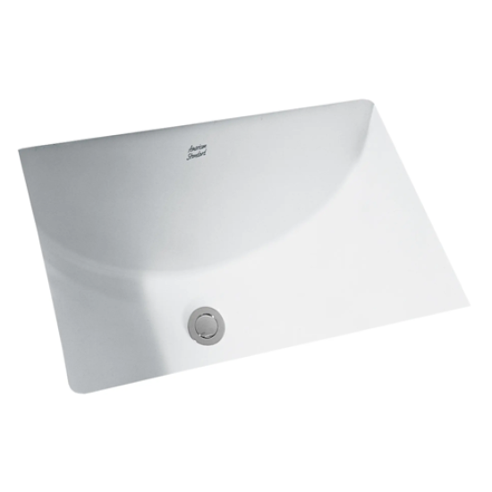 Brush up on geometry for the bathroom. This minimalist undercounter sink from our Studio® Suite would make a stunning addition to any modern bathroom. The simple rectangular sink has a unique curved basin. Made from high-gloss, stain-resistant Vitreous China. For use with a deck- or wall-mount faucet.