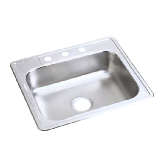 Elkay® Dayton® Stainless Steel 25" x 21-1/4" x 6-9/16" 3-Hole Single Bowl Drop-in Sink
