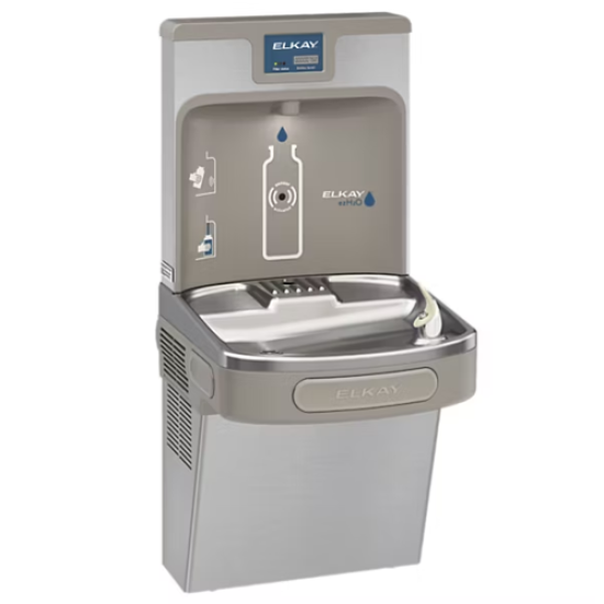 This ezH2O® enhanced bottle filling station delivers a quick water bottle fill and helps sustainability efforts by minimizing use of disposable bottles. Consolidated, space-saving cooler and bottle filling design features a drop-down cooler wrapper for quick, convenient filter changes. Integrated look combines our exclusive Green Ticker™ that counts bottles saved and FillSafe™ filter recognition system that alerts to needed filter changes.
