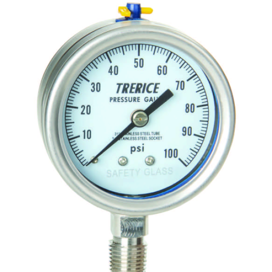 The Trerice 700 Series Industrial Gauge is designed for the varying needs of the world's industrial applications. This gauge has a stainless steel case and ring. Its sturdy interior design and field liquid-fill capability (no kit required) provide the durability and accuracy required for industrial process environments. Available wetted parts are bronze tube with lead-free (PBF) brass socket, stainless steel tube and socket, or Monel tube and socket.