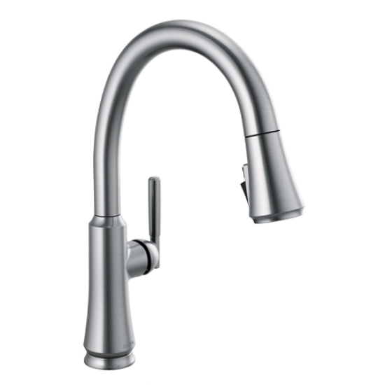 A contemporary take on traditional styling, the Coranto™ Kitchen Collection brings everyday refinement to a space with subtle design details that nod to both the past and the present. Delta® MagnaTite® Docking uses a powerful integrated magnet to set your pull down sprayer precisely into place and hold it there so it stays docked when not in use. Delta® ShieldSpray® Technology cleans with laser-like precision while containing mess and splatter. A concentrated jet powers away stubborn messes while an innovative shield of water contains splatter and clears off the mess, so you can spend less time soaking, scrubbing and shirt swapping. Delta® kitchen faucets with DIAMOND™ Seal Technology perform like new for life with a patented design which reduces leak points, is less hassle to install and lasts twice as long as the industry standard*. Kitchen sink faucets with Touch-Clean® Spray Holes allow you to easily wipe away calcium and lime build-up with the touch of a finger. You can install with confidence, knowing that Delta kitchen faucets are backed by our Lifetime Limited Warranty. *Industry standard is based on ASME A112.18.1 of 500,000 cycles.
