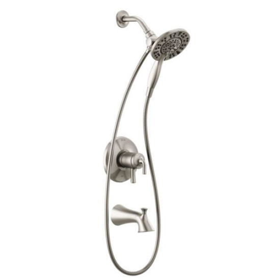 - Pull-up diverter tub spout diverts the flow of water from the tub spout to the shower head